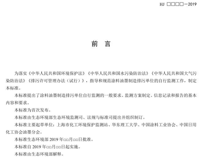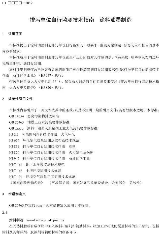 生态环境部发布了涂料油墨制造行业的排污单位自行监测技术指南,其中对于恶臭污染物、大气污染物、水污染物、土壤环境、地下水环境等监测内容进行了说明,全文如下: